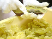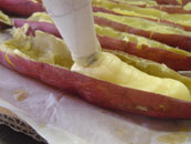 2 230度のオーブンで2時間焼いたお芋の中身をくりぬきます。 |