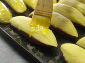 6 形を整えた後は、表面に卵をたっぷり塗ります。 |